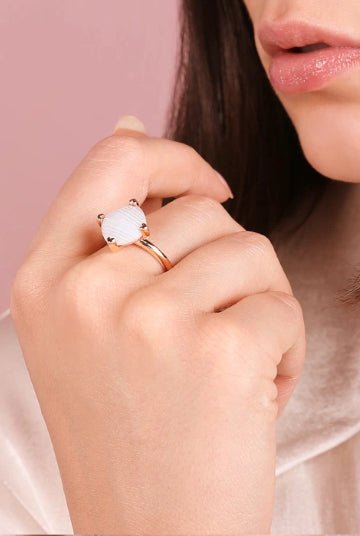 Bronzallure Faceted White Agate Cocktail Ring